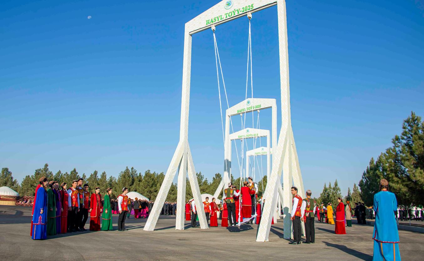 Праздничную атмосферу дополнили традиционные блюда, приготовленные в больших казанах, и народные игры: гореш, перетягивание каната, яглыга товусмак, шахматы и шашки. Аналогичные мероприятия и чествования передовиков-аграриев прошли во всех велаятах Туркменистана.